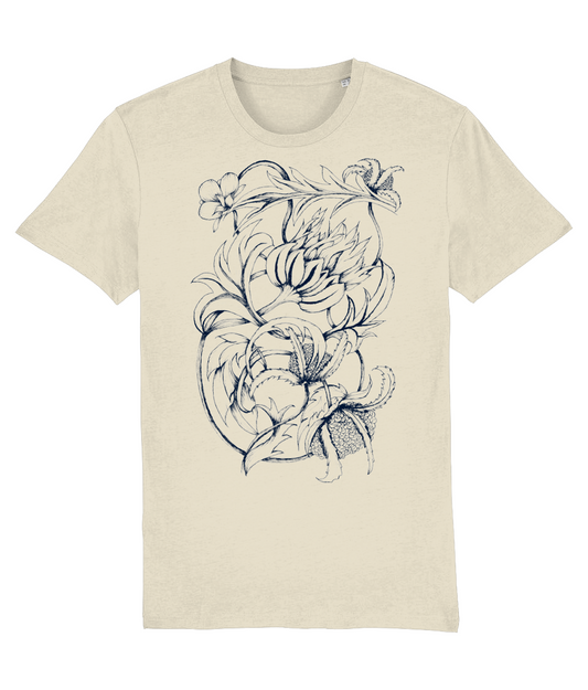 T-shirt “Oda Dark Blue” – Natural Beige biologisch katoen