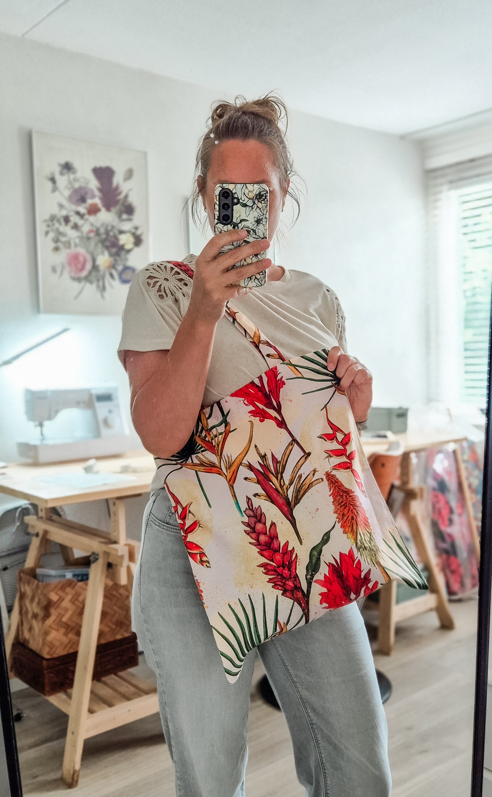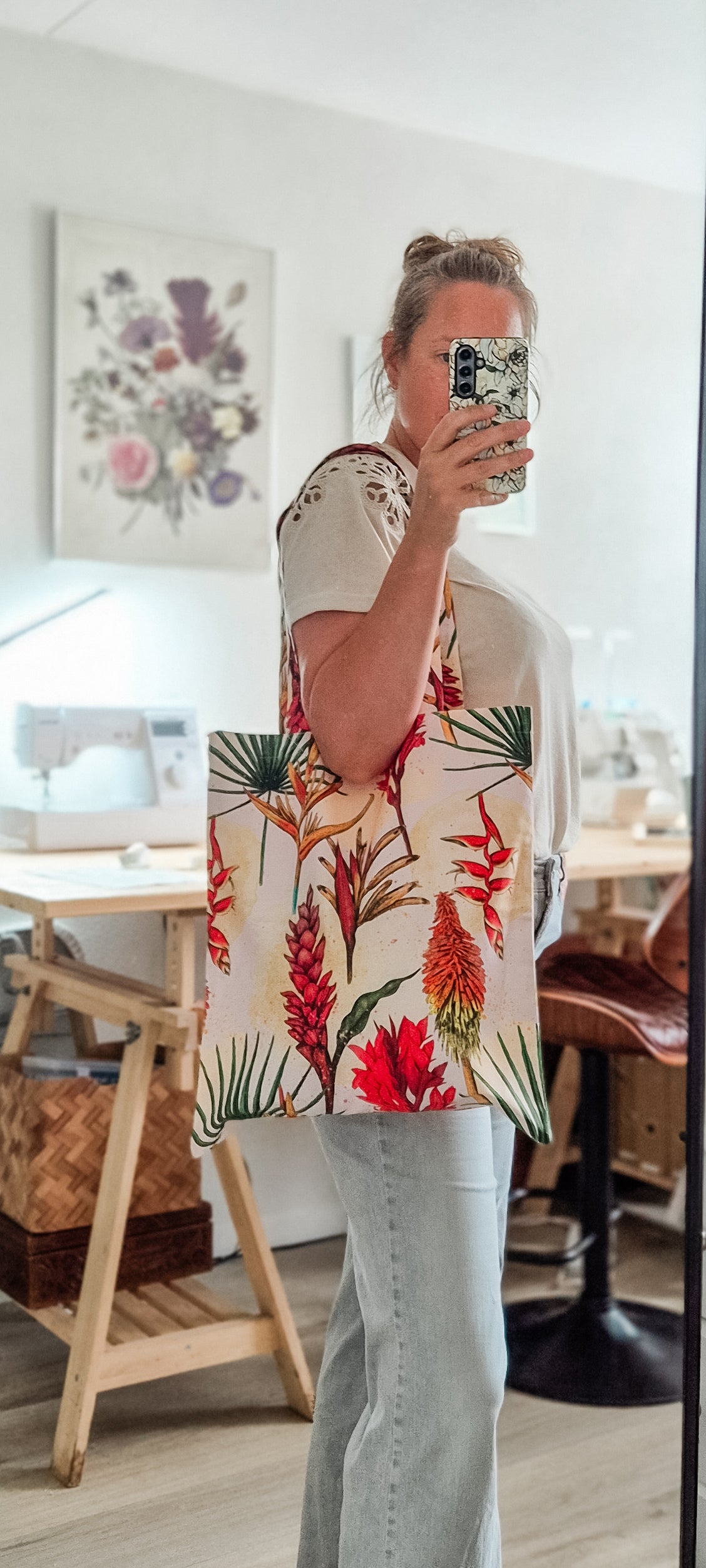 Deze stevige tote bag is gemaakt van 100% biologisch katoen (GOTS) en volledig bedrukt met een all-over print van een origineel Studio Florianne ontwerp. De print loopt door over de hele tas waardoor elk detail van het design tot zijn recht komt.